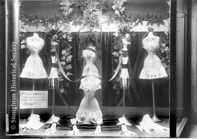 Guest | March 4, 2022This may be the east display window of P I Hale's dry goods (including carpets, millinery, and ladies tailoring) store -- note that the DSCF0510 photo shows the west display window of that store. If so, this would be a photo of 112-114 W Main St (pre-July-1970 address; today in 2022 it is the Chorus Public House, with its address being 154 W Main St). The "P. N. Corsets" on display were first mentioned in Madison newspaper ads in 1906.DSCF0524 web DSCF0524 web