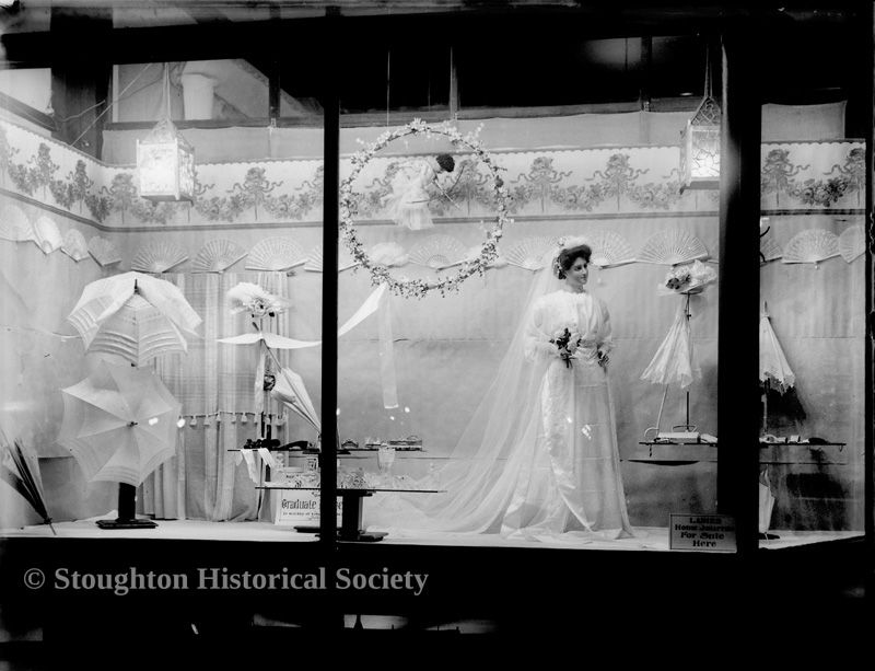 Guest | March 4, 2022This is likely the west display window of P I Hale dry goods store (including carpets, millinery, and ladies tailoring) -- note that the DSCF0510 photo shows the same window. If so, this would be a photo of 112-114 W Main St (pre-July-1970 address; today in 2022 it is the Chorus Public House, with its address being 154 W Main St).DSCF6689 web DSCF6689 web