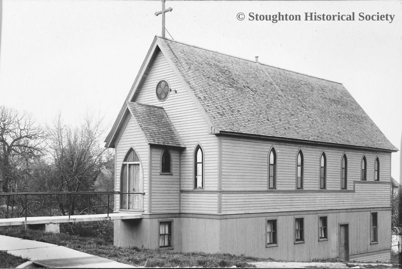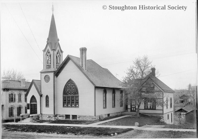 Curator@HistoricStoughton.org | April 15, 2019From LG: Original First Lutheran Church, destroyed by fire, corner of Jefferson and Sixth St.DSCF6446 web DSCF6446 web