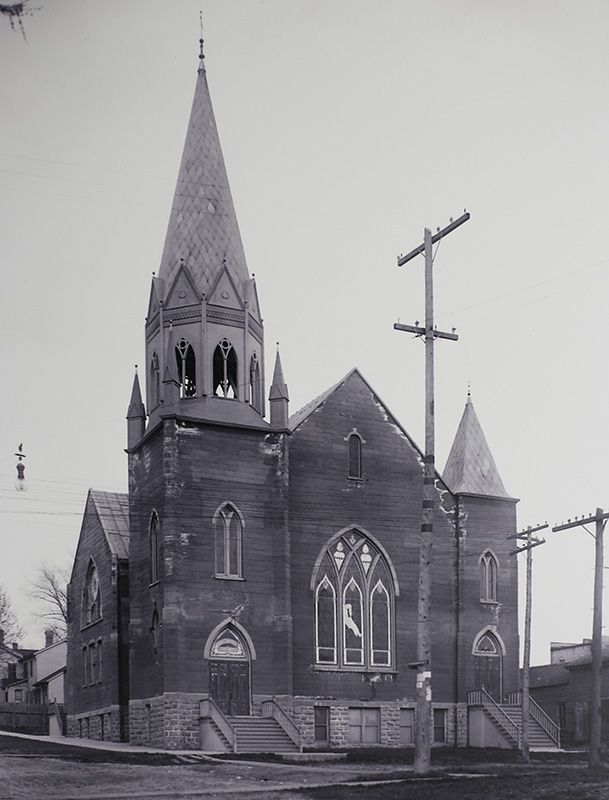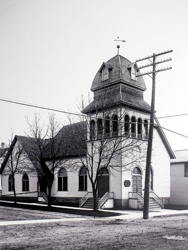 The First Baptist Church was constructed in 1862 and a complete remodel (as seen here) was completed in the early 1900s. The First Baptist congregation disbanded in 1938 and the building is no longer in existence.